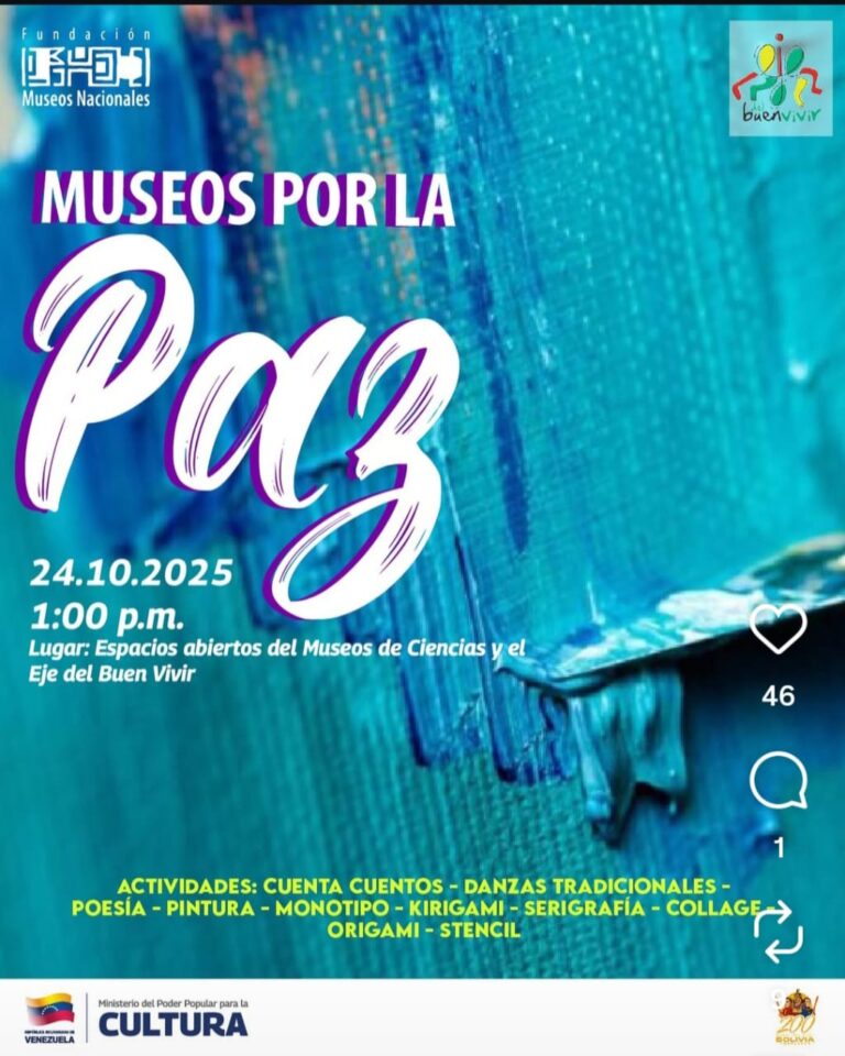Estarán realizando actividades desde cuenta cuentos, pintura🎨, danza tradicional, poesía, collage, origami y demás actividades. En los espacios abierto del Museo de Ciencia y el Eje del buen vivir, Caracas.