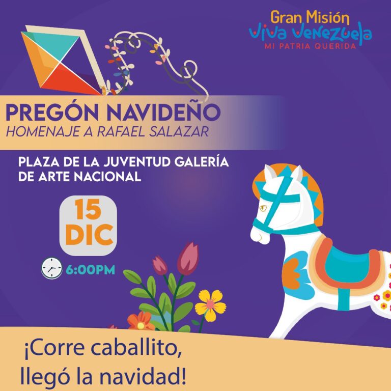Te esperamos este 15 de diciembre a las 6:00 pm, en la Plaza de la Juventud de la Galería de Arte Nacional Caracas, para celebrar el pregón navideño.