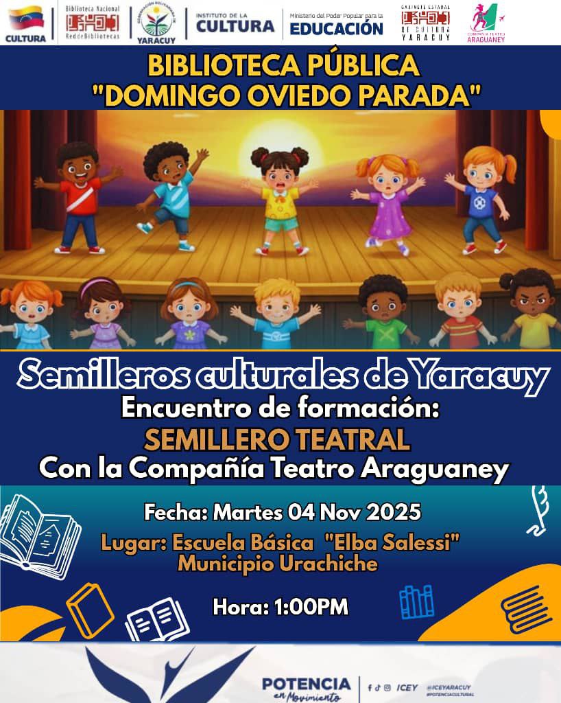 Prensa MPPC (05/11/2025).- Este martes 4 de noviembre, la Escuela Básica “Elba Salessi” del municipio Urachiche, estado Yaracuy, sirvió de escenario para el inicio de la primera etapa del taller de formación en el área teatral, dirigido a los niños y niñas de la institución.