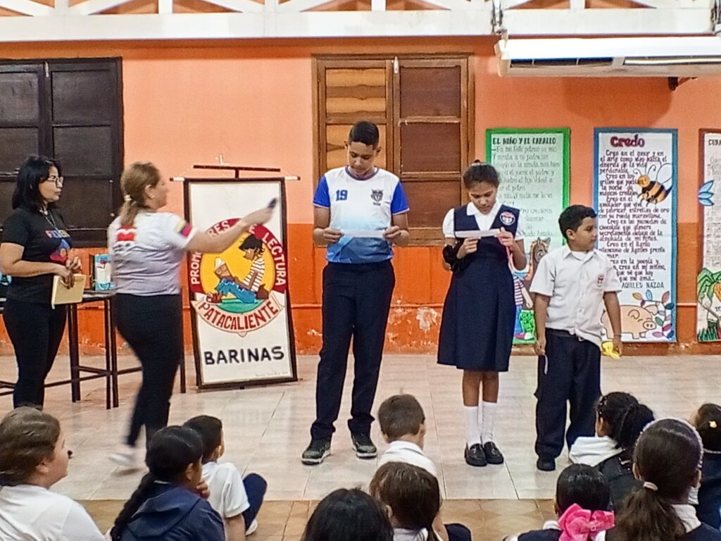 La celebración continuó este 23 de abril con estudiantes de primaria y bachillerato. En horas de la mañana, el Instituto Bachiller Elías Cordero Uzcátegui (IBECU) y la U.E. Simón Rodríguez realizaron encuentros en torno a la palabra escrita. Hernán González, integrante de la Biblioteca Nacional y del colectivo promotores de lectura “Patacaliente”, destacó la participación activa de los jóvenes en la lectura de poemas y relatos.