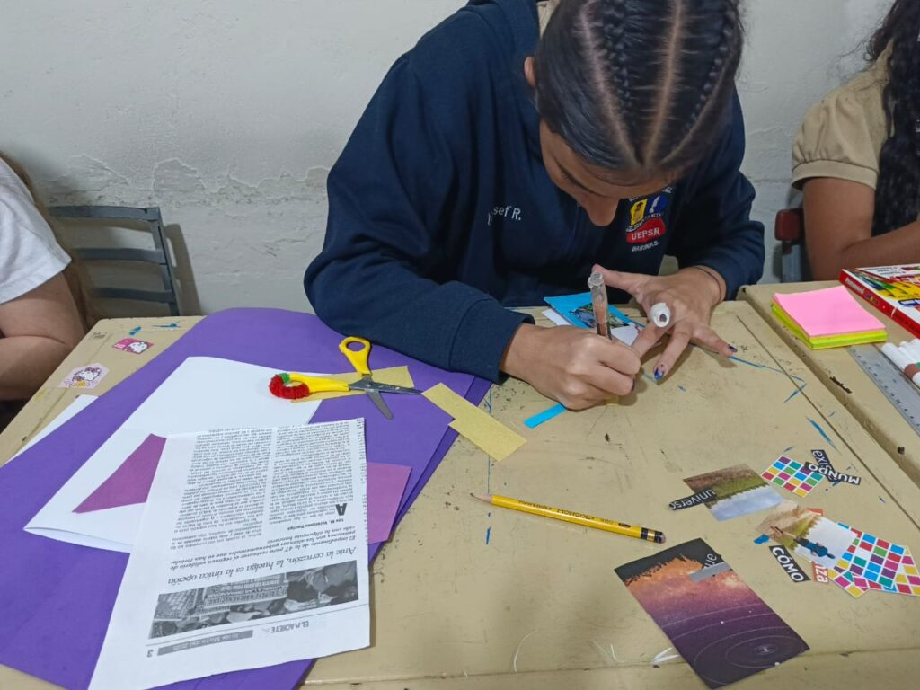 Por su parte, la Plataforma del Libro y la Lectura del Gabinete de Cultura impulsó un taller de elaboración de fanzines en la U.E. Simón Rodríguez. Allí, los estudiantes de bachillerato escribieron sus propias historias y recibieron formación sobre derechos de autor y la importancia de citar correctamente fuentes externas en sus escritos. Simultáneamente, el Grupo Escolar Estado Guárico también disfrutó de una jornada de literatura infantil orientada al esparcimiento y el aprendizaje.