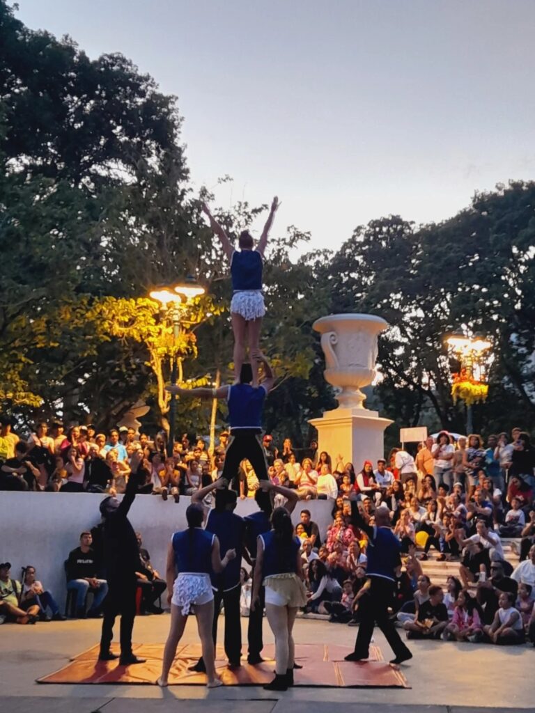 El cierre de esta locación estuvo a cargo del Circo de Venezuela, cuyos malabaristas y acróbatas desafiaron la gravedad con una destreza que mantuvo a todos con la mirada puesta en el cielo.