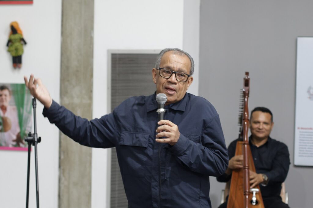 El espíritu del llano continuó en la voz del maestro Cristóbal Jiménez, figura fundamental en la difusión y estudio del acervo llanero, quien desglosó la complejidad de este género como sí se tratase de una clase magistral. “No hay joropo sin corrió” sentenció; mientras, habló sobre la poesía popular del joropo y la esencia lírica de este género y cómo cada copla es una crónica, un pedazo de historia, una filosofía de vida con rima y metáfora sencilla.