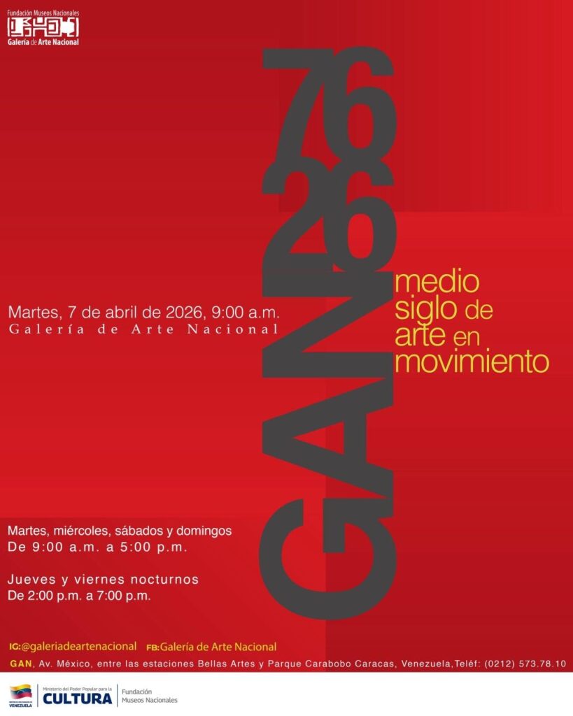 Prensa MPPC (04/04/2026).– La Galería de Arte Nacional (GAN) invita a celebrar su 50° aniversario con la inauguración de la exposición “Continuidad histórica – Tiempos Superpuestos: Nuevas lecturas del arte venezolano” este 07 de abril a las 9:00 a.m.