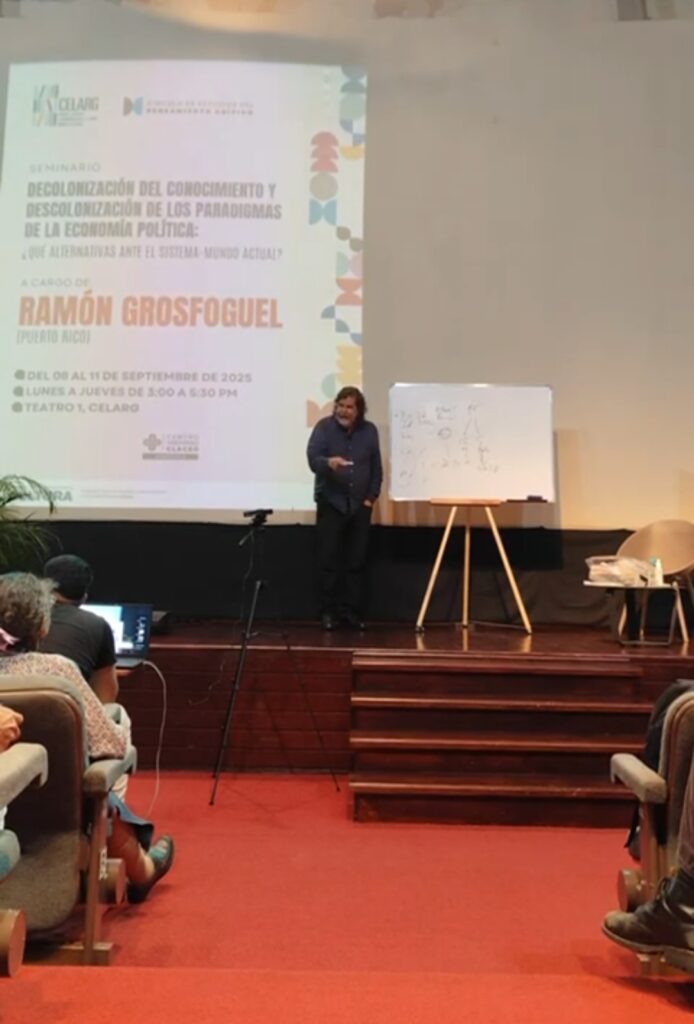 Prensa MPPC (12/09/2025).- El jueves 11 de septiembre, en el seminario “Descolonización del conocimiento y descolonización de los paradigmas de la economía política: ¿Qué alternativas ante el sistema-mundo actual?”, el sociólogo puertorriqueño Ramón Grosfoguel discutió la importancia de descolonizar la economía política en Nuestra América.