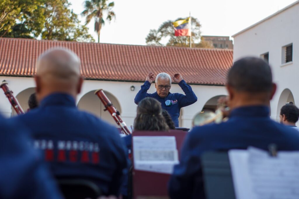 La solvencia técnica y la majestuosidad de la Banda Marcial Caracas fueron, sin duda, el corazón que marcó el pulso de esta jornada de orgullo nacional. Bajo una ejecución impecable, la institución demostró su jerarquía histórica brindando un acompañamiento de altísima precisión que realzó la labor de los solistas, manteniendo un equilibrio sonoro perfecto.