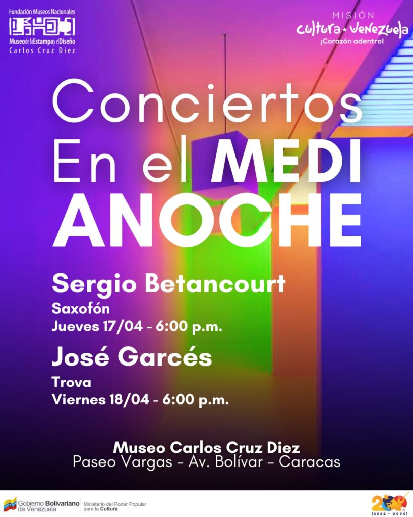 Prensa MPPC (11/04/25).- En un esfuerzo conjunto por fortalecer la movida cultural caraqueña, y en el marco del proyecto “MEDI ANOCHE” del Museo Carlos Cruz-Diez, la Misión Cultura presenta un ciclo de conciertos que se ha estado desarrollando desde principios de abril.
