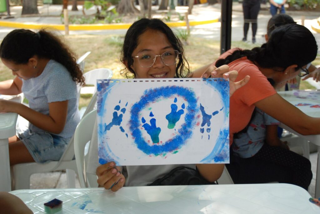 En ese sentido, Gabriel Urbáez, participante de 10 años, compartió su emoción tras completar su obra. “Me encantan los animales y la naturaleza, pero sobre todo los dinosaurios. Lo que más me gustó fue decorar las huellas, especialmente las del Velociraptor” acotó.