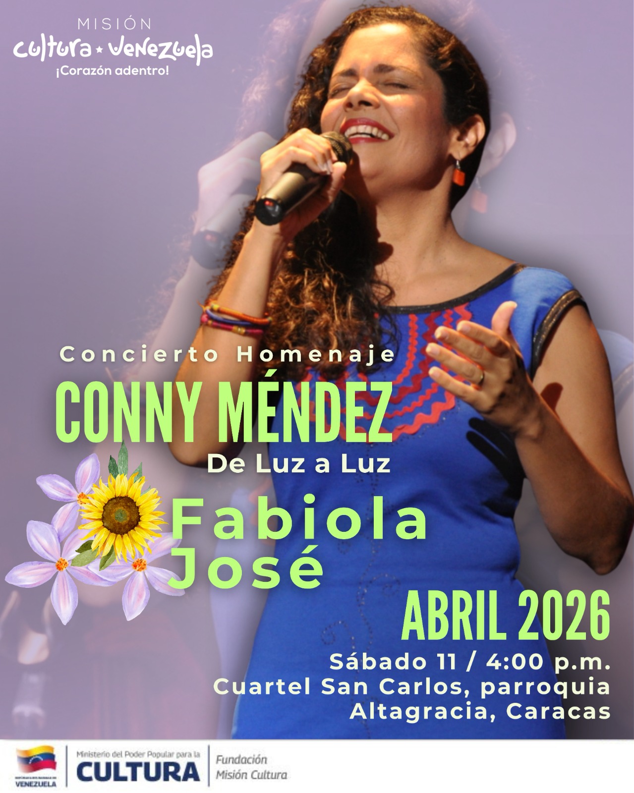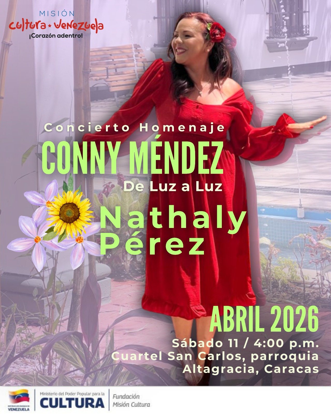 Prensa MPPC (09/04/2026).- El Ministerio del Poder Popular para la Cultura (MPPC), a través de la Misión Cultura, invita a toda la comunidad caraqueña a una jornada llena de alegría y venezolanidad para conmemorar los 128 años del natalicio de la inolvidable Conny Méndez.