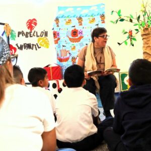 Un cuento se va construyendo en conjunto con frases continuas. Niños y niñas agregan ideas, recrean escenarios y construyen una trama que se relaciona con